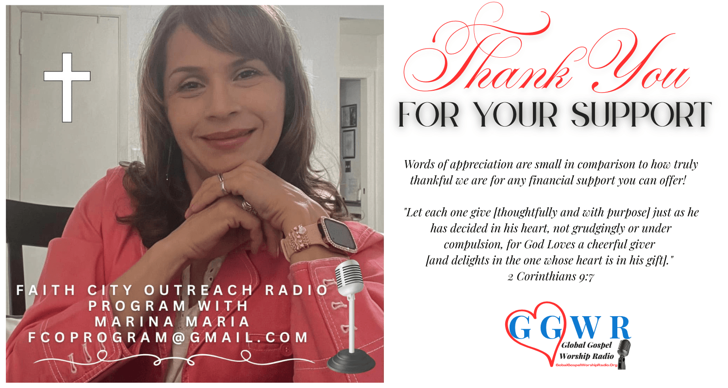 Listen to Inspiring Interviews by Marina Carbajal, With Pastors & World Leaders on the Radio Program, Faith City Outreach. Marina conducts interviews with Pastors, World Leaders, Muscians, Book Authors, and Dynamic World Changers from all around the Globe!